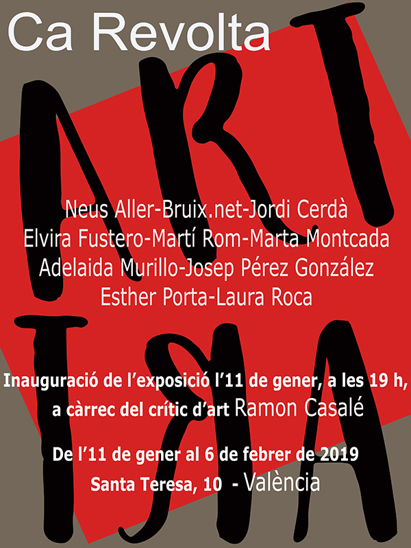 Inauguració l’11 de gener a les 19 h. Carrer Santa Teresa, 10. València. Presentació a càrrec del crític d’art Ramon Casalé